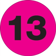 1" Circle - "13" (Fluorescent Pink) Number Labels