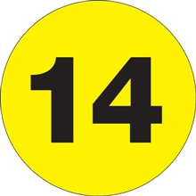 1" Circle - "14" (Fluorescent Yellow) Number Labels