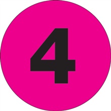 1" Circle - "4" (Fluorescent Pink) Number Labels