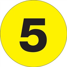 1" Circle - "5" (Fluorescent Yellow) Number Labels