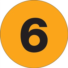 1" Circle - "6" (Fluorescent Orange) Number Labels