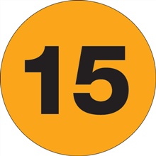 1" Circle - "15" (Fluorescent Orange) Number Labels